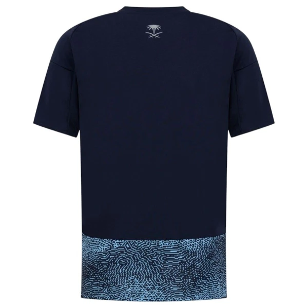 Bortedrakt Al-Nassr 25-26 er hovedsakelig mørkeblå med et turkis mønster foran og nederst på ryggen. Designet er en hyllest til stjernene fra Radio Evning, og ermene, skuldrene og ryggen er ensfarget mørkeblå. Logoen, KAFD-sponsoren og klubb våpenet er sølvfarget.