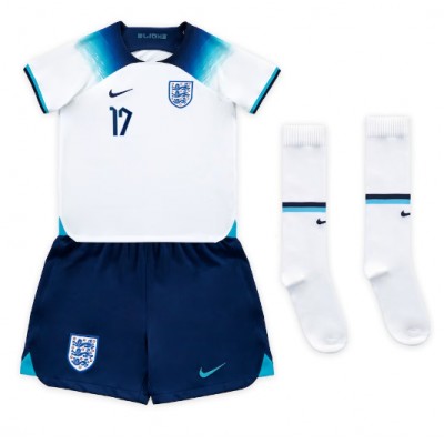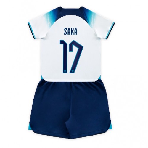 England Fotballdrakt Barn Bukayo Saka #17 Hjemmedrakt FIFA VM 2022 Kortermet (+ Korte bukser)